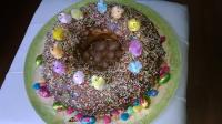 Ciao Rosablu71 come promesso ho inserito  la foto del dolce che ho fatto con la tua bellissima ricetta. Non avendo trovato il riso soffiato al cioccolato ho messo delle codette colorate e all'interno del "nido" ovetti di cioccolata. Deliziosa e anche molto carina da vedere.