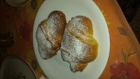 Be..questo è uno dei casi dove 5 stelle sono poche!!appena sfornati...stra buonissimi!!come quelli del bar!!li ho farciti un po con marmellata e un po con Nutella. ..inutile dire quale sia il più buono!! Big Smile..ci vuole un po di pazienza..ma si fa tutto..l'unica cosa è che aggiungerei un po di zucchero all impasto..oppure..se si riesce..riempire ogni cornetto per tutta la lunghezza. .se no a gusto mio..manca un pochino..ma di sicuro li rifarò! !grazie! ! tmrc_emoticons.;)spero si veda la foto!!storta..ma c è! !