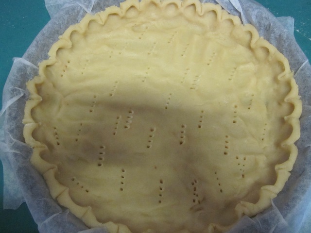 "coperchio chiuso" .tirare la frolla e stenderla in uno stampo da 26 cm foderato con carta forno, bucherellare la superficie con i rebbi di una forchetta.