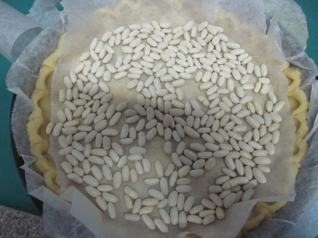 mettere un foglio di carta forno sulla base e riempirla con fagioli secchi (cottura in bianco).