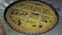 Stendete la frolla in una sfoglia spessa 0,5 cm e adagiatela in una teglia da crostata, riempite con la crema di ricotta e decoratela con la rimanente frolla, a vostro piacere.