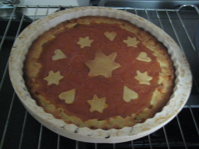 Stendere l'impasto e foderare uno stampo da crostata, lasciandone un pò da parte per le decorazioni.