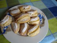Sistemare i dolcetti sulla teglia foderata con la carta da forno. Cuocere nel forno caldo : 180° / 25min circa. Raffreddarli. Decorarli con lo zucchero a velo.