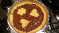 Quando è ancora bella calda spalmare 3 bei cucchiaioni di nutella sopra così si spalma meglio e lasciare raffreddare.