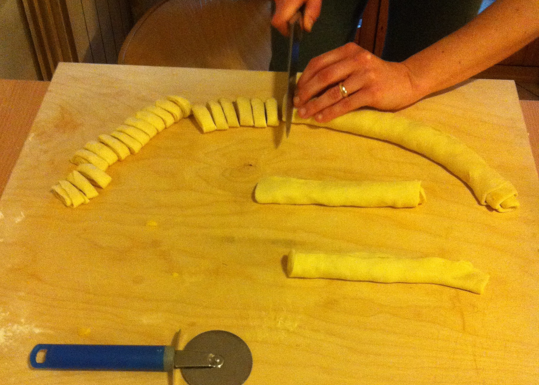 - Tagliare i rotolini a rondelle di 1cm circa;