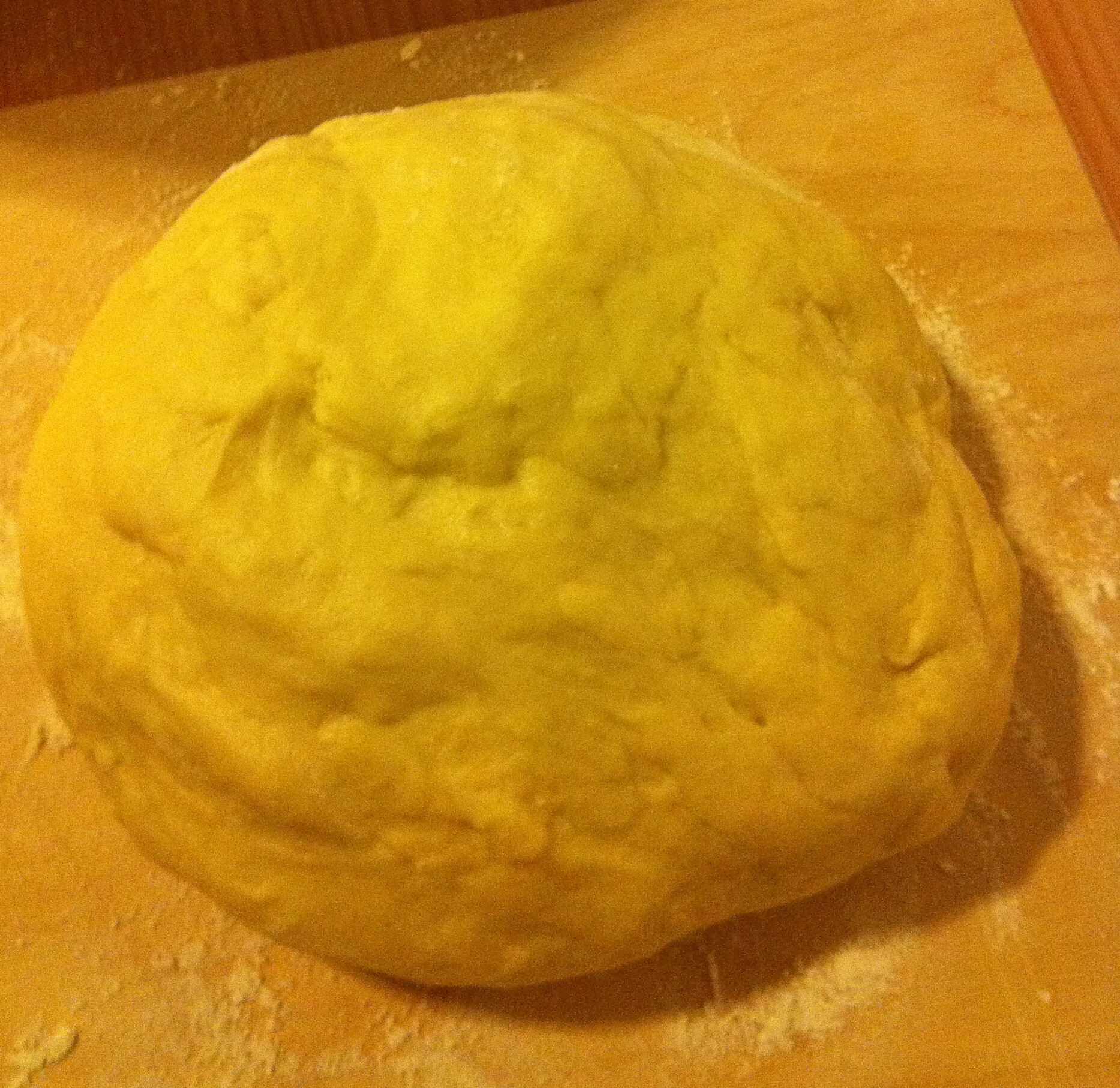 - Dividere la palla in due parti e stendere la prima in una sfoglia molto sottile (2mm circa);