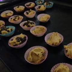 Mettere nei pirottini e decorare con gocce in gocce di cioccolata o marmellata!