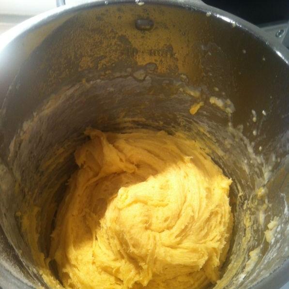 "coperchio chiuso" la scorza di un limone già grattuggiata e lo zucchero: tritare 10 sec. vel 8;unire la farina, le uova, il burro e il lievito impastare 20 sec. vel. 5.