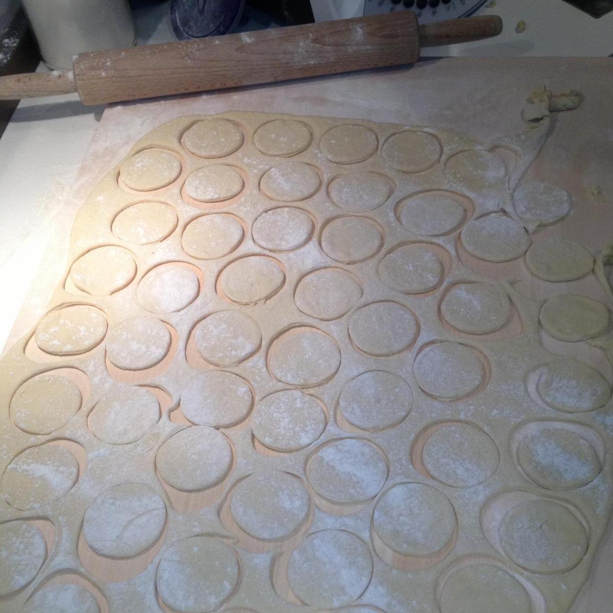 Con un coppapasta da 8 creare dei dischi (metà dei quali saranno le basi dei biscotti e l'altra metà la parte superiore).