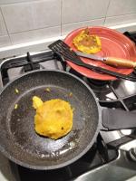 - Ungere un padellino con olio e far riscaldare, mettere due cucchiai colmi della pastella e un po' per formare il peduncolo, far cuocere da ambe due le parti per qualche minuto;