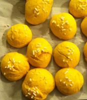 "coperchio chiuso" e mettere il latte e il lievito10 sec. vel6.Aggiungere la zucca10 sec. vel.4 ,la farina iniziare con 500g. poi se rimane morbida aggiungere altri 50g., poi il burro10 sec.vel5,poi 3 minuti