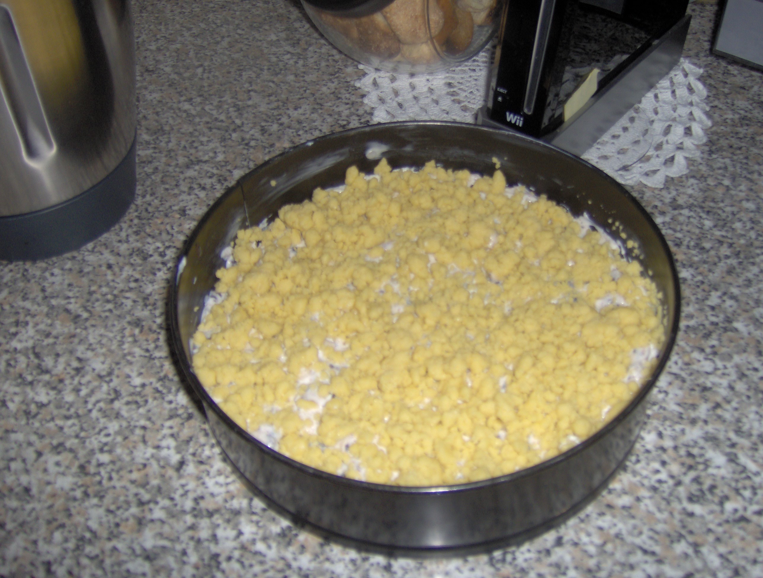 "antiorario" ; - Imburrare uno stampo per crostata di 24 cm di diametro e versarvi più della metà delle briciole;