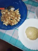 5. Unire pinoli, noci, zucchero e cannella e poi aggiungere la mostarda piccante tagliata a pezzettini.