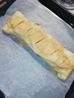 8. Sistemare lo strudel su una teglia e spennellarlo con il composto di burro e pangrattato rimasto.