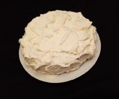 - Coprire tutto il dolce con la panna livellando bene i bordi spatolando o con sac à poche, poi decorare con farina di cocco.