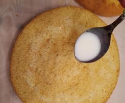 - Spalmare un cucchiaio di crema sul piatto per far aderire il primo disco, poi versare un po' di bagna senza inzupparlo troppo e senza bagnare troppo i bordi (se no non reggono il peso degli altri strati), stendere la crema bimby e spolverare con la farina di cocco e così via fino all'ultimo strato.
