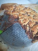 - Aggiungere cucchiai di crema al cioccolato o Nutella sulla superficie a piacere, e ricoprire il tutto con il composto rimanente;