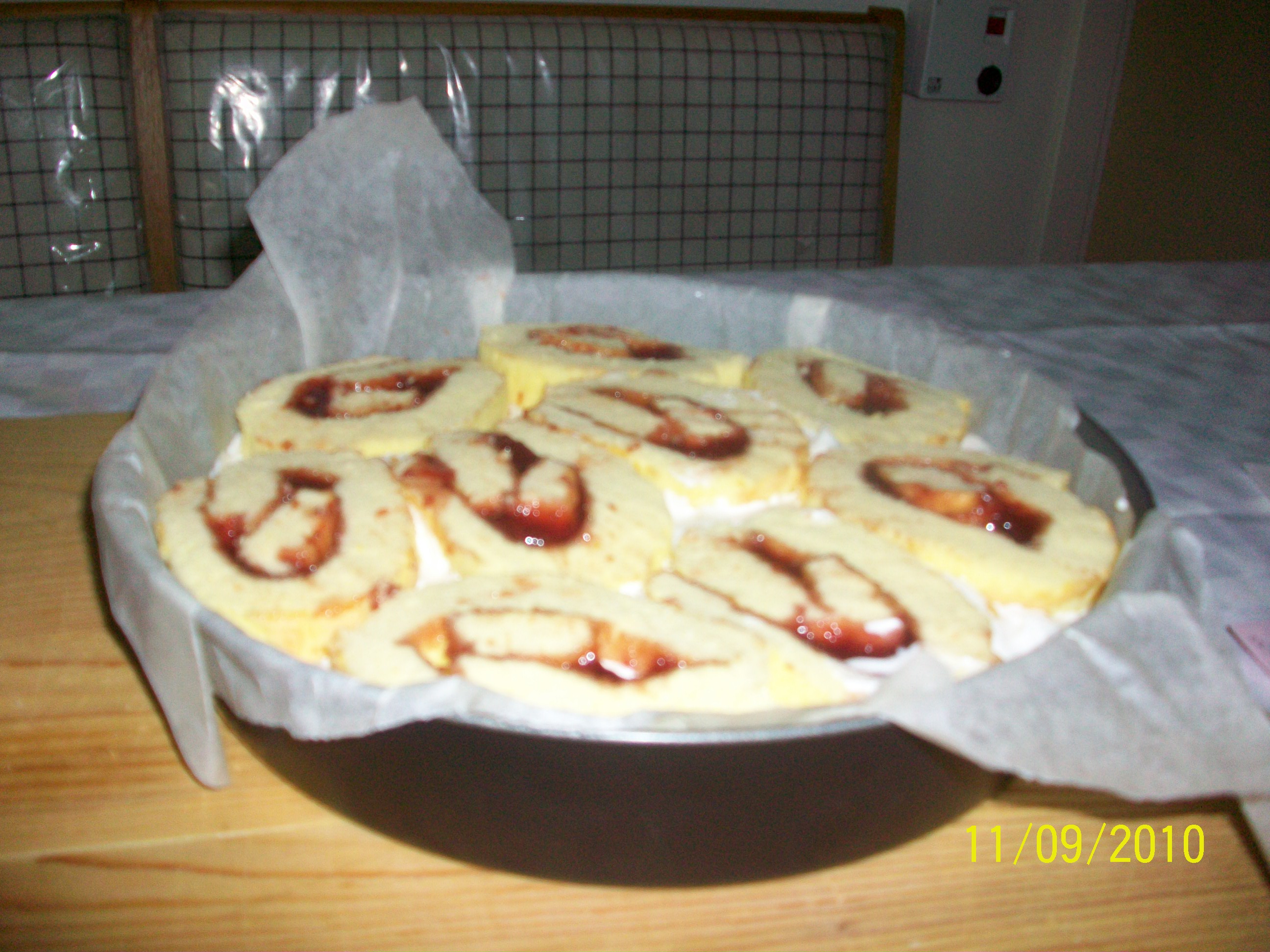- Quando è pronta togliere la carta sopra, capovolgere il dolce su un vassoio, eliminare anche l'altra carta e guarnire o con panna e fragole o con p.d.z. o con altre decorazioni a piacere.