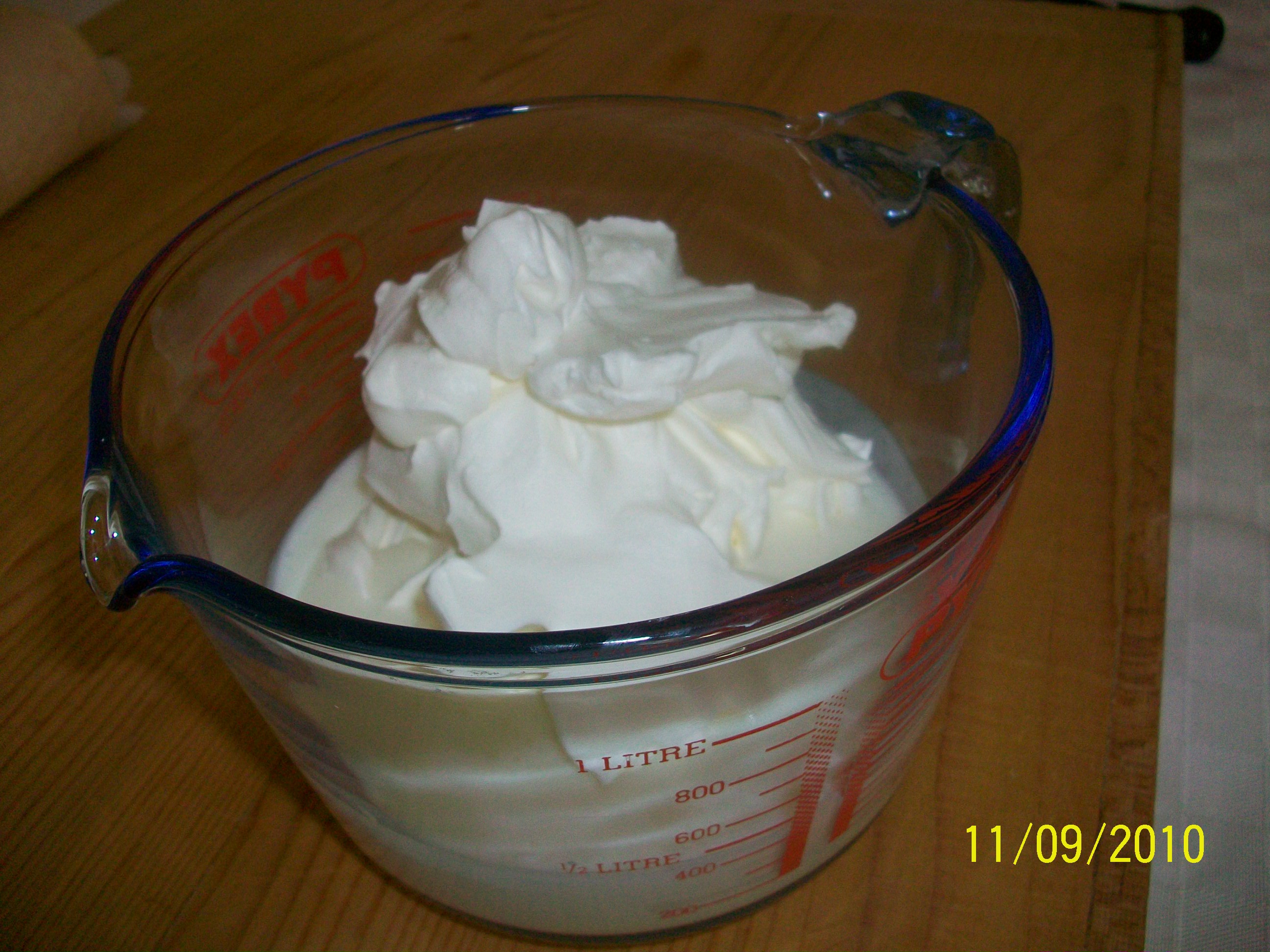 - Montare la panna: 2-3 m./vel. 3 e unirla alla crema di yogourt amalgamandola con una forchetta, con movimenti dall'alto verso il basso.