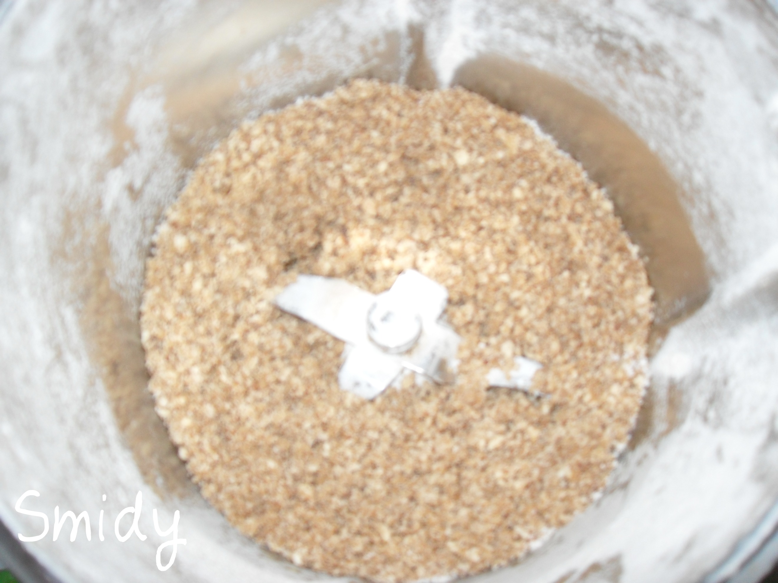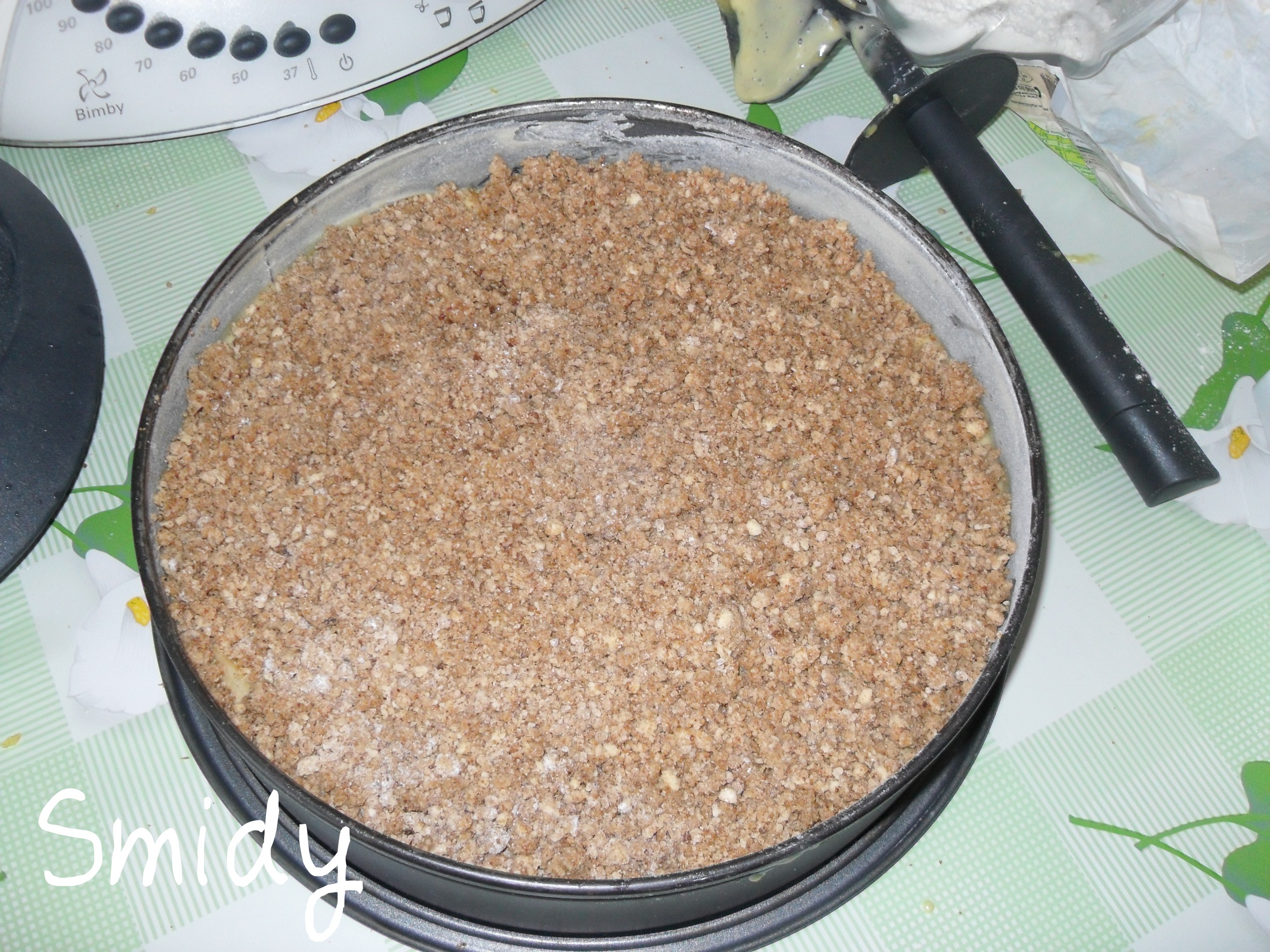 "coperchio chiuso" ; lavorate 20'' a velocità 4.Otterrete un impasto granuoloso che dovrete distribuire sulla torta.