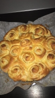 Mettere nel boccale burro e zucchero,lavorare:1 min.vel.3.Stendere il composto,ottenuto sulla pasta.Arrotolare la sfoglia su stessa,formando un cilindro.Tagliare dei tronchetti alti 4 cm,chiuderli nella parte inferiore,sistemarli in una teglia imburrata e infarinata,ben distanziati l'uno dall'altro.Lasciare  a lievitare per circa 1 ora.Cuocere in forno preriscaldato a 180° per 30 min.ca.