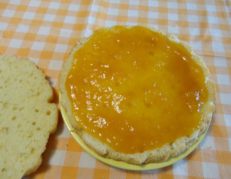 Farla raffreddare e tagliarla in due orizzontalmente, farcirla con la marmellata (io ho usato la mia marmellata di pesche preparata con il Bimby) e spolverizzarla con abbondante zucchero al velo.
