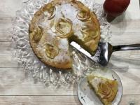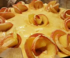 Mettere man mano le rose di mela nell'impasto senza sprofondarle troppo.