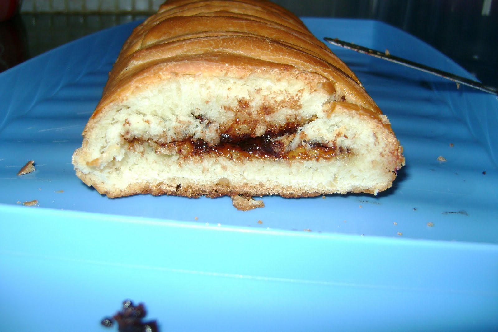 Per questione di tempo l'ho fatta lievitare tutta la notte,ma non l'ho ripegata su se stessa,praticamente l'ho stesa,farcita e chiusa,poi l'ho lasciata lievitare ancora un pò e poi infornata.....devo dire che è molto molto buona......ciao