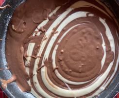 - Sulla crema bianca mettere due cucchiaiate di crema al cacao, anche questa si spande, continuare così fino al termine dei due composti; le foto che ho visto erano tutte perfette...la mia pende da un lato ma l'ho fatta con l'aiuto dei miei bambini quindi per me è perfetta anche se storta