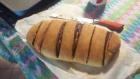 Gatto oggi : buono!! Ho usato 1/3 di lievito di birra e farina 0, ho fatto lievitare i due panetti 11 ore ed il "salamino" altre 3 ore: è diventato enorme! !