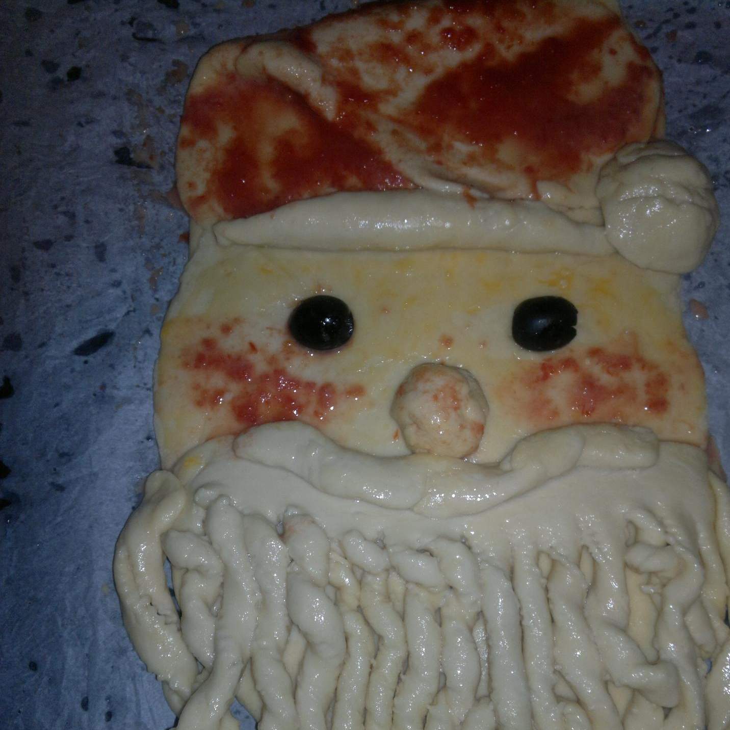 il cappello e guance e il naso con passata di pomoodoro e tuorlo.