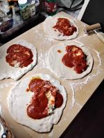- Dividere l'impasto in 4, stendere ogni parte di impasto in una sfoglia sottile (0,5 cm) e di forma rotonda (Ø 26 cm);