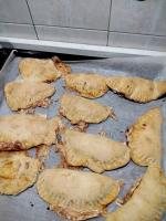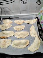 - Stendere l'impasto con il mattarello e tagliarlo in tanti cerchi di 20 cm di diametro (ne vengono fuori circa 15) poi farcirli e chiuderli a calzone sigillando i bordi con i rebbi di una forchetta per evitare che si aprano.