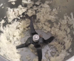 - Tritare la cipolla 3 Sec. Vel. 5. Poi mettere in acqua e ghiaccio, scolare e tamponare molto bene.