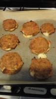 Passare nella farina,nel composto cn l'uovo e poi nel pangrattato.
