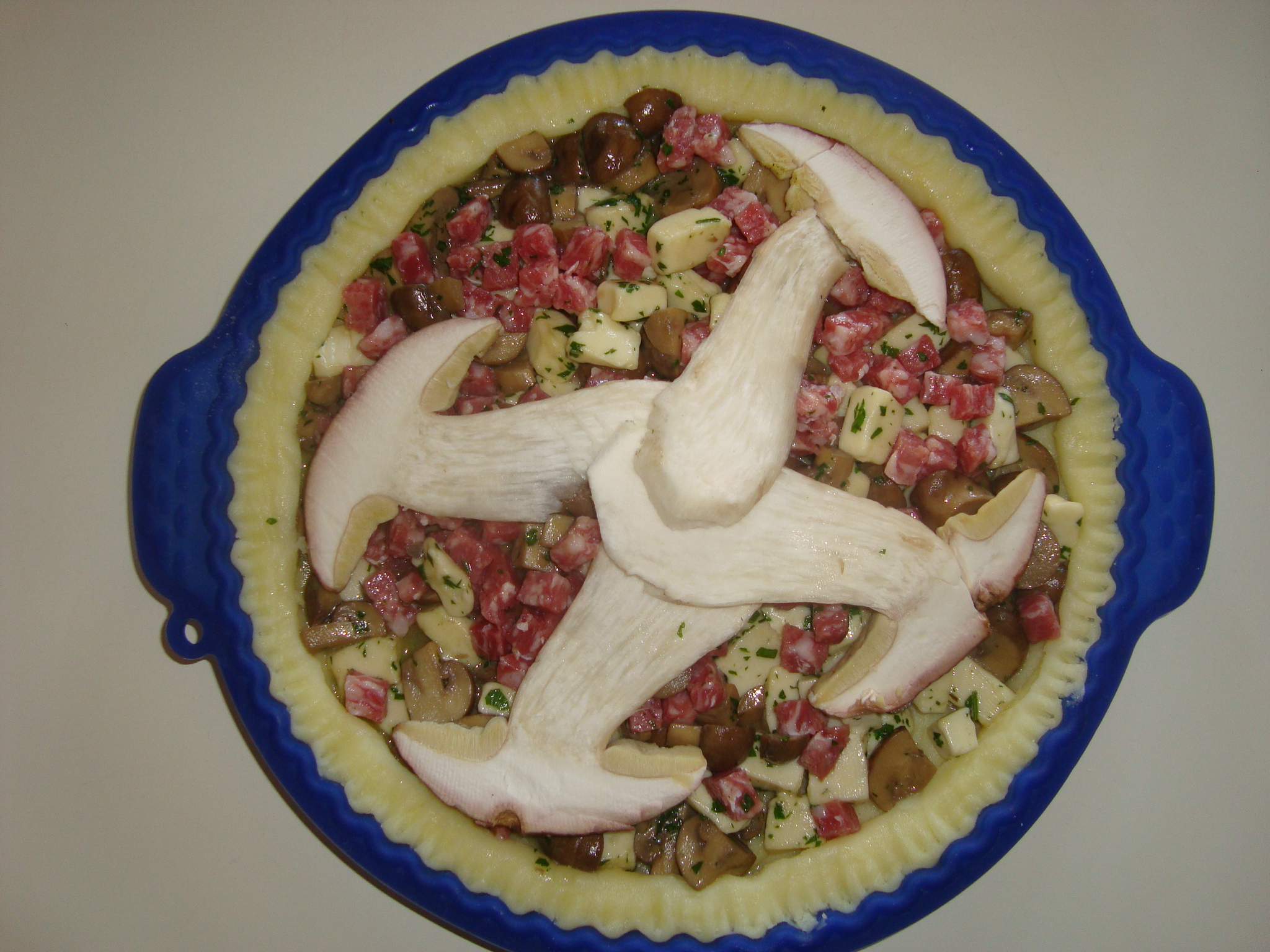 "antiorario" /vel. 1.Versare la farcia sulla base della crostata, a piacere mettere qualche fettina sottile di funghi porcini crudi e cuocere in forno caldo a 180° per 30 minuti (adeguatevi alle caratteristiche del vostro forno).