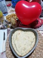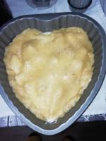 2. Prendere l'impasto dividerlo a metà, stendere la prima metà cercando di dare la forma di un cuore, distribuire la crescenza.