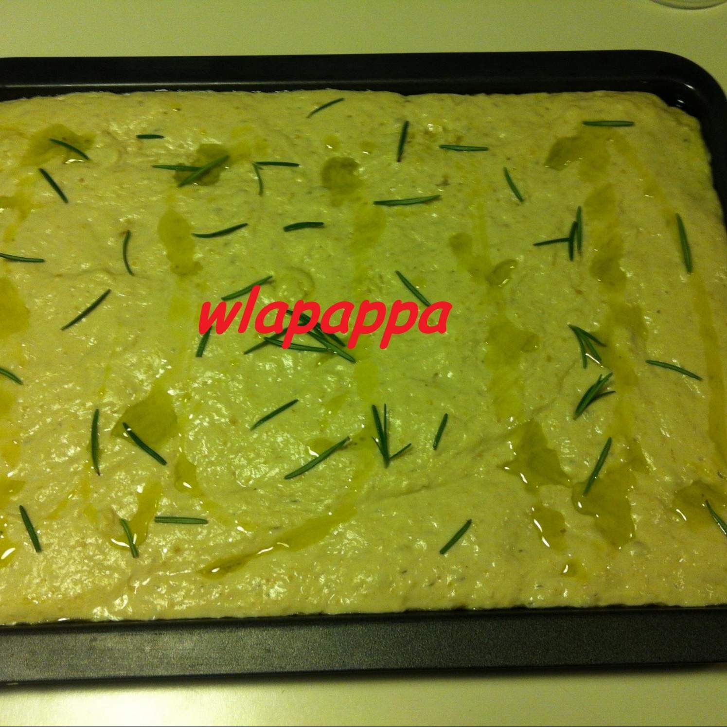 Con l'aiuto della spatola (l'impasto non sarà lavorabile, risulterà molto morbido) mettere a lievitare in una ciotola coperta, in un luogo riparato e caldo (io uso la funzione lievitazione del forno, se non l'avete basterà preriscaldarlo per una decina di minuti a 50°, spegnere e poi mettere l'impasto). - Versare l'impasto in una teglia unta di olio e rimettere a lievitare nel forno spento per almeno mezz'ora. Quando sarà rilievitata tirare fuori, accendere il forno a 220°.