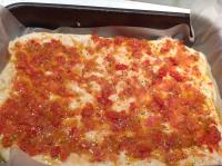 . 5 Lasciar lievitare l'impasto per un paio d'ore, dopodichè stenderlo, posizionare i pomodorini (come in foto) schiacciandoli e facendoli entrare bene nell'impasto. Mettere tutto il liquido dei pomodorini sulla focaccia e infornare per 20 minuti a 200° ventilato.