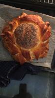 e bellissimo poi l'importante che sia buonoNoo!! Rosa ho sbagliato nel "costruire" il pane: ho prima aperto i petali del primo strato, poi ho appoggiato sopra il secondo strato e aperto i petali anche di questo... uff... solo dopo ho capito che dovevo metterli prima uno sull'altro e poi aprire i petali di tutti e due. Mi spiace, ho sciupato il tuo bel pane, oltretutto così facendo, il foro centrale è rimasto troppo vuoto e non si è colmato del tutto con la lievitazione della sfera centrale. però di sapore era buonissimo ( tra uno strato e l'altro ho spennellato con l'olio evo perchè sono intollerante al lattosio).