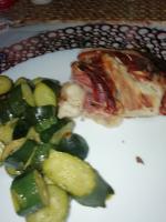 9. Mettere le fette di speck sul rotolo e girare formando la spirale.
