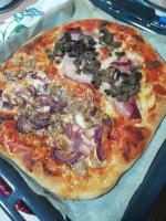 - Togliere la pizza dal forno, mettere la mozzarella e il condimento desiderato e infornare altri 4/5 minuti.