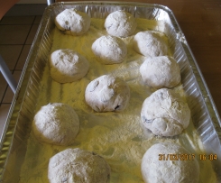 - Mettere ogni pallina sopra una teglia da forno cosparsa di semola e lasciare lievitare fino al raddoppio,Infornare a forno caldo a 200' per 30/40 , controllare perchè non tutti i forni sono uguali