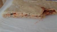 11. Stendere l'altra parte di impasto e coprire la mattonella, saldare i bordi accuratamente, spennellate con il tuorlo e cospargere abbondantemente con semi di sesamo;