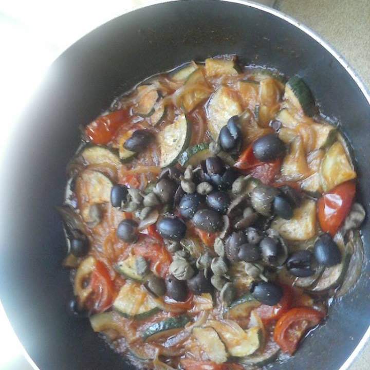 • peperoncino, qualche oliva nera denocciolata e cappero, sale q.b