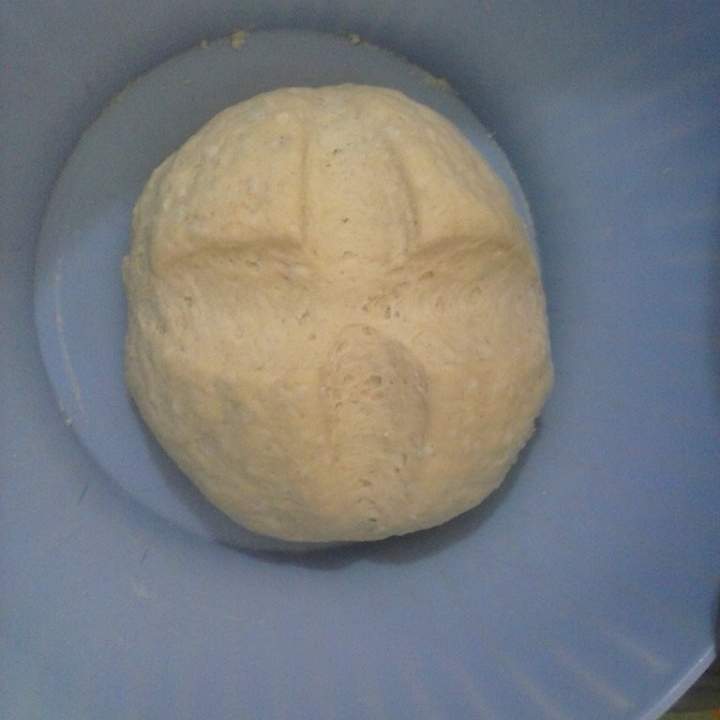 LIEVITINO E IMPASTO: mettere nel coperchio chiuso"coperchio chiuso" un po’ di acqua, il malto, lievito, due pugni di farina e impastare a 37° per 2 minuti a vel.2, ottenendo una composto morbido che costituisce il lievitino. Lasciare lievitare nel coperchio chiuso"coperchio chiuso" per una mezz’oretta. Dopo aggiungere la restante acqua, la restante farina e il sale. Impastare per 4 minuti vel velocità spiga"velocità spiga" . Bisogna ottenere una pasta un po’ dura perché con l’aggiunta del soffritto, dopo, si farà appiccicoso. (state attente con l’acqua. Se nel caso ne mettere troppa aggiungere altra farina) Togliere la pasta dalcoperchio chiuso"coperchio chiuso" e lavorarla ancora un po’ con le mani dando qualche piega e mettere a lievitare in una ciotola per 2 orette.