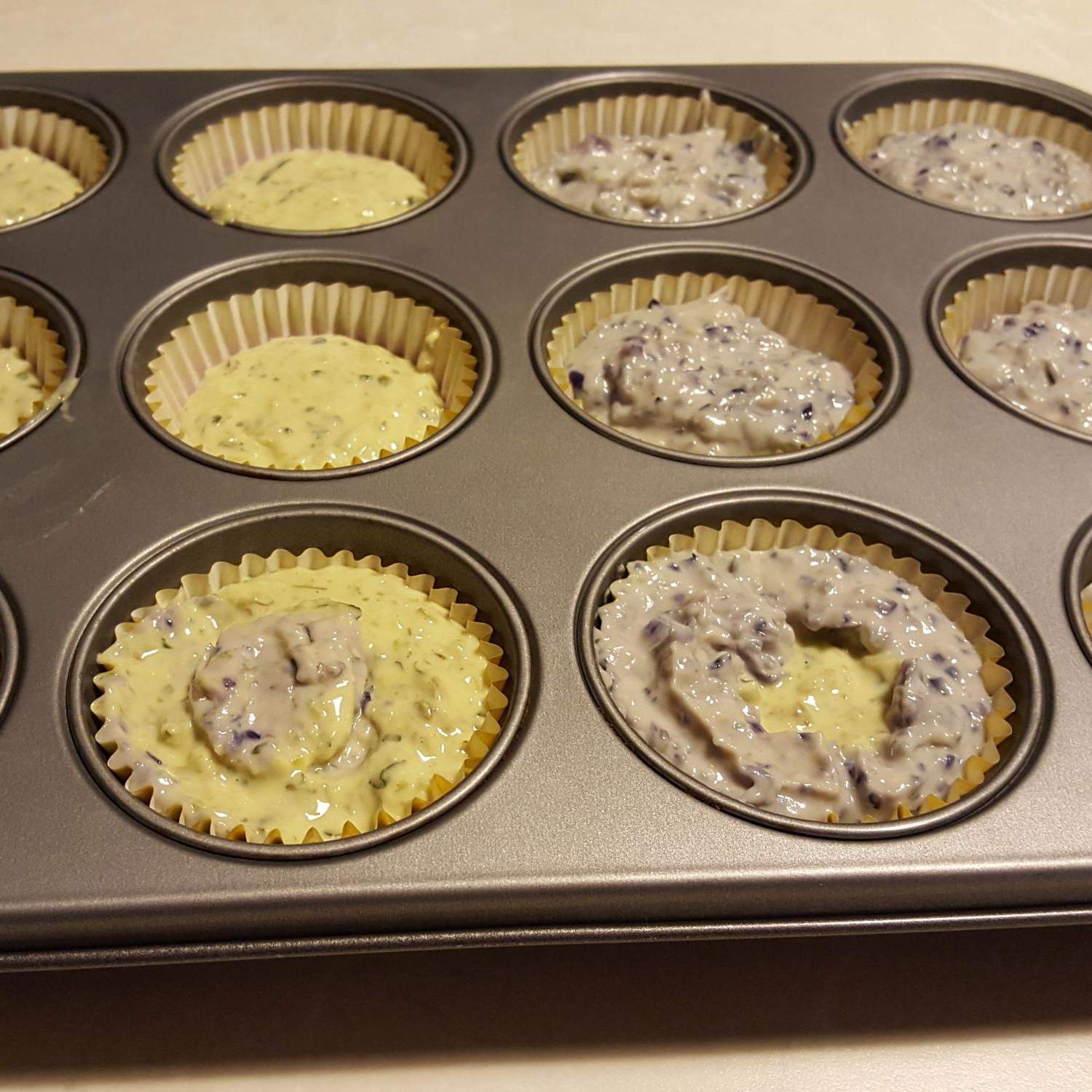 - Versare il composto ottenuto nei pirottini già messi nello stampo da muffin.