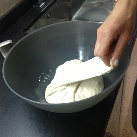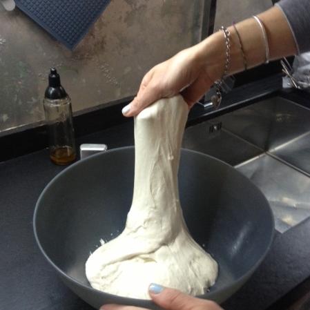 Trasferisci l'impasto in una ciotola unta di olio,chiudi tutto in una busta di plastica e lascia riposare 3 ore. Ogni 45 minuti ungersi le mani con olio e fare più pieghe Stretch&Fold per volta per far asciugare l'impasto, ovvero prendere un lembo di pasta,tirarlo e ribaltarlo sull'impasto stesso (vi consiglio di cercare su youtube, ci sono molti video che dimostrano questa metodica!).