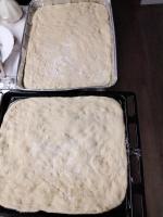 Passato il tempo di lievitazione stendere la pasta nelle teglie e lasciare lievitare per 1 ora e 30 min. nel forno spento.