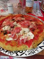 Condire con la scatoletta di polpa, olio e sale e cuocere in forno già caldo a 180° per circa 30 minuti(la cottura e il tempo dipendono dai tipi di forno, varia dai 20 minuti ai 45 minuti; si consiglia di controllare). A 10 minuti dalla fine della cottura tirare fuori la teglia dal forno e condirla con la mozzarella tagliata a cubetti e l'origano. A fine cottura e prima di servire spargere sulla pizza le scagliette di parmigiano, il basilico e, se si desidera, il prosciutto crudo(o anche cotto). Buon appetito.